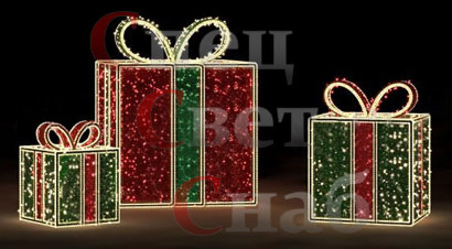 Интернет-магазин «СпецСветСнаб» предлагает уличные светодиодные фигуры «Подарок» всевозможных форм и размеров по приемлемой цене. При этом, клиент получает надежные световые фигуры, которые прослужат ему не один год. Высокое качество изготавливаемых изделий объясняется серьезным подходом со стороны производителя к своим обязанностям относительно создания светодиодной продукции.